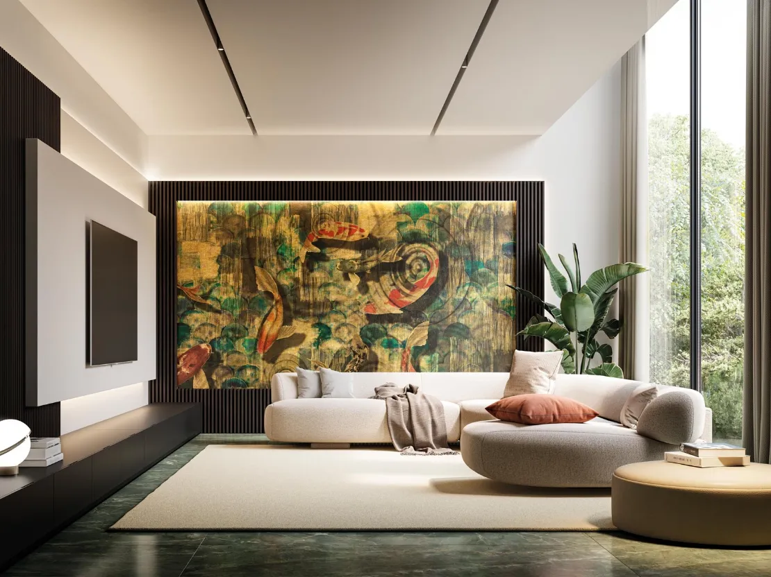 La Carta da parati Gold Fish di Instabilelab può essere abbinata con arredi di ogni stile, anche se è particolarmente adatta per una stanza design. Le nostre composizioni con Carta da parati vinilica trovano posto in ogni tipo di stanza, in quanto abbinano ottimamente doti di design e praticità. La finitura di questo prodotto ne fa un oggetto di arredo pensato per personalizzare gli ambienti di cui disponi, anche se sono già arredati. In negozio ti faremo vedere diverse soluzioni di stile, sempre di grande impatto decorativo: la scelta sarà prettamente personale, basata solamente sulle tue preferenze. Conveniente e molto facile da applicare, questa soluzione sa soddisfare ogni tipo di richiesta, grazie ad un'ampia gamma di opzioni estetiche di diverso genere.