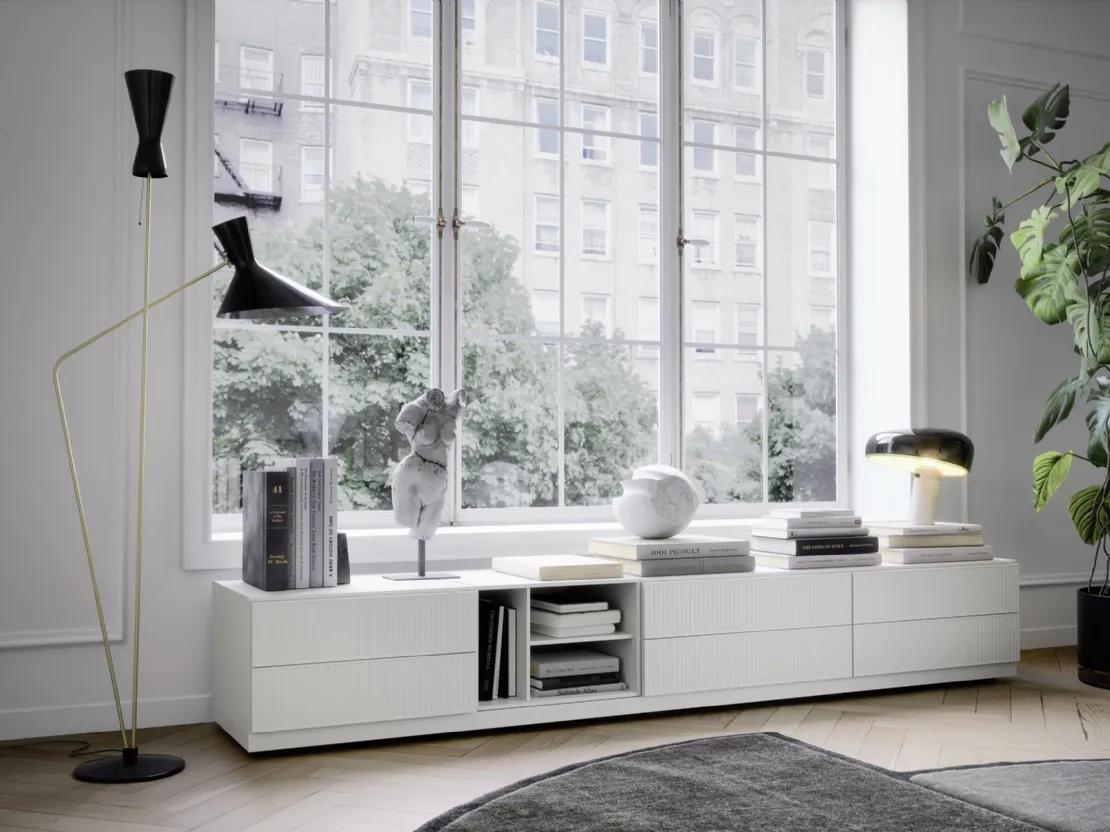 La Madia Box 12 di Novamobili nella fotografia in laccato opaco risolve le più personali necessità di stile e spazio, arredando la zona giorno con funzionalità e un design unico. Anche in un soggiorno di dimensioni contenute, questi mobili soggiorno sono in grado di risolvere differenti esigenze abitative garantendo differenti possibilità di caratterizzazione su misura. Se desideri un modello di mobile soggiorno salvaspazio, scopri nel nostro punto vendita un ricco catalogo di Arredamento Casa dei migliori produttori e contattaci per informazioni e preventivi. Se sei un appassionato di arredo e sei sempre aggiornato riguardo i nuovi trend nel settore, il nostro negozio è il luogo ideale per te. Le Madie moderne, tra cui il modello mostrato in foto, rendono belli il soggiorno o la zona pranzo grazie a design unico e grandi doti di contenitività.