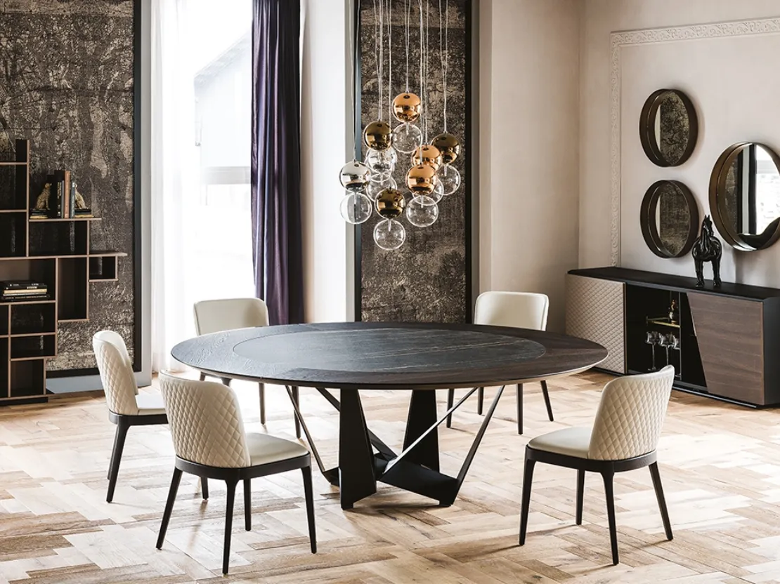 Ideali per dare vita a degli abbinamenti unici con sedute e complementi design, i Tavoli fissi del marchio sono soluzioni tra le più originali in commercio, ideali per il living e la zona cucina. Un modello come quello nella fotografia, in abbinamento alle giuste sedute, saprà valorizzare il mood delle stanze di casa dedicate in assoluto all'ospitalità. Tavolo Skorpio Ker-Wood Round di Cattelan Italia: realizzato in materiali durevoli è caratterizzato dalle linee decise del top e da un basamento ricercato ed elegante. Se sei alla ricerca di un tavolo da pranzo di alto contenuto estetico, contattaci e ricevi info e preventivi sul modello visibile in foto. Il noto e conosciuto marchio Cattelan Italia, specialista nella realizzazione di arredi in ceramica, ha scelto per la sua collezione una grande varietà di materiali, linee e cromie.