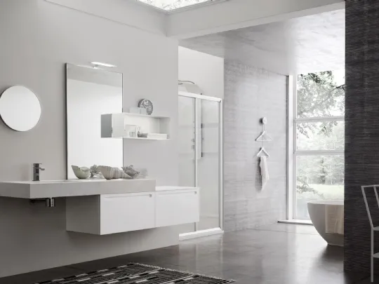 Mobili bagno sospesi Wind 03 di Arcom: scopri l'Arredo Bagno in laccato opaco design e arreda il bagno di casa.