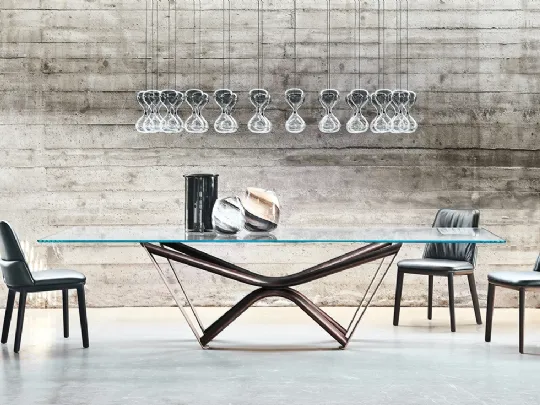 Se sei alla ricerca di tavoli fissi design, ecco a te il modello da pranzo in vetro Spyder del marchio Cattelan Italia.